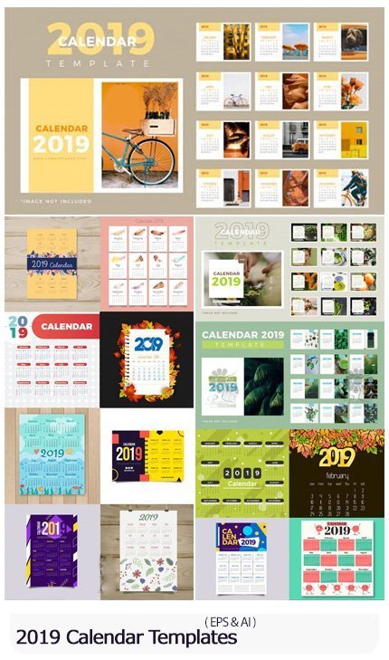2019 Calendar Vector Templates Collection 2 25 wall and desktop calendars vector templates 2019 | 133 MB | EPS & AI format