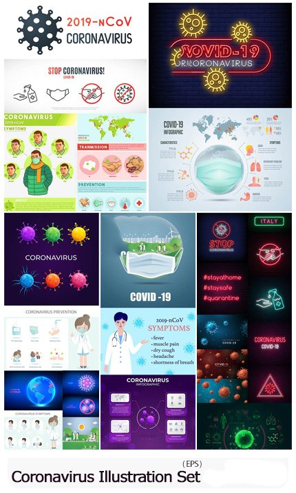 2019 Covid-19 Coronavirus Concept Illustration Set