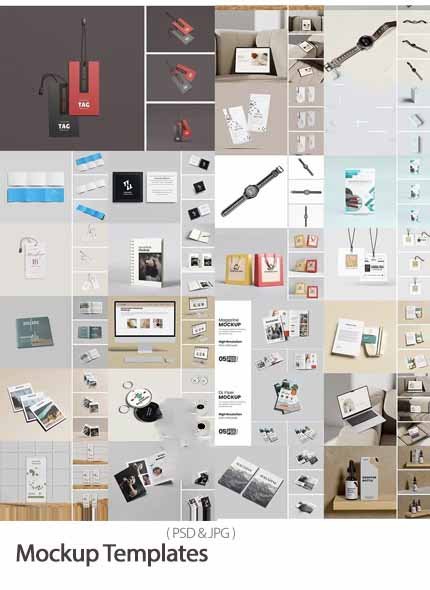 25 Packaging Mockups, Office Sets, Watches, iPads, etc. | 2210 MB | Comes with Preview | PSD & JPG Format