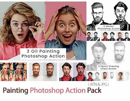 Photoshop Action Pack with Pencil Painting, Oil Paint, and Vector Effect | 2.37 MB | Comes with Preview | ATN & JPG format