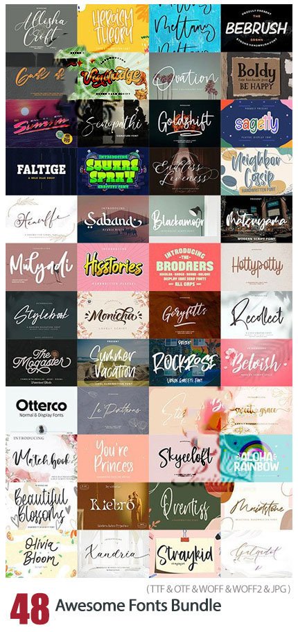 48 English Fonts with Special Designs | TTF & OTF & WOFF & WOFF2 & JPG | 12.7 MB
