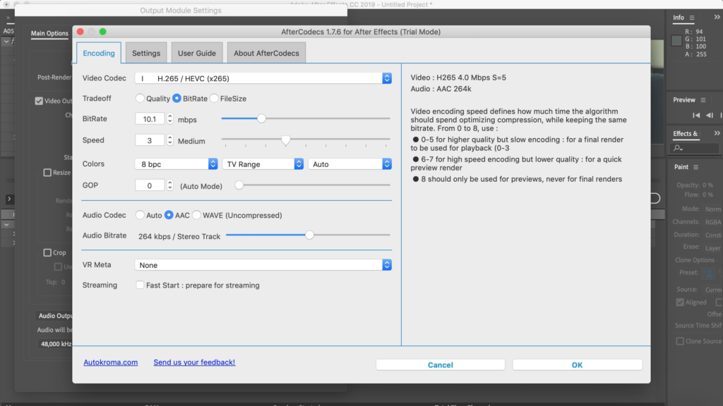 Autokroma AfterCodecs 1.10.10 x64 WIN – All-in-One ProRes / H.264 / H.265 / HAP Codec Exporter