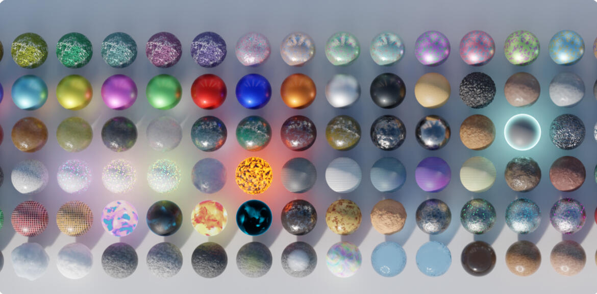 - Special Effects (8 Materials): Glow effects, emission surfaces, holographic, iridescent, and specialty materials