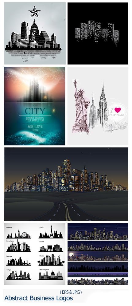 In this collection, you can see 25 vector images of the city, which are available for download in EPS and JPG formats on the site.