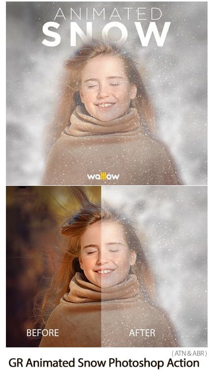 Animated Snow Photoshop Action to create animated snowfall effect with video tutorial from River Graphics | 1.93 MB | ATN & ABR format