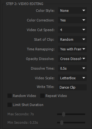 - Limit Shot Duration option (Minimum shot duration, Maximum shot duration).