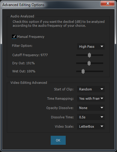 - Automatic Video Editing by volume threshold of the music (with sensitivity controller).