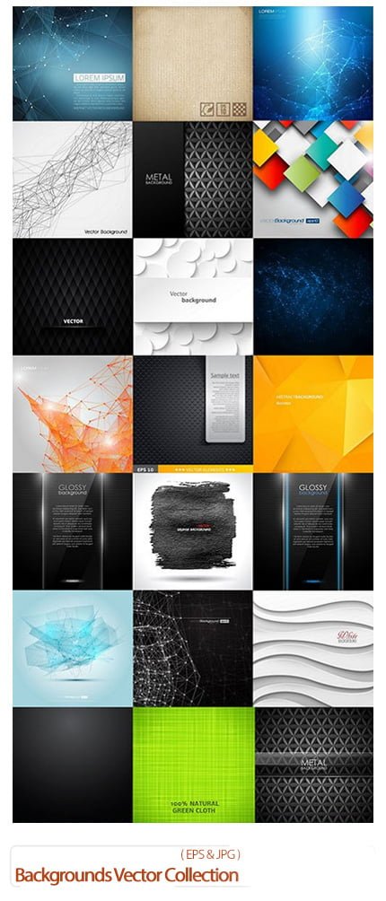 Backgrounds Vector Collection 25 images of various abstract background vectors | 112 MB | Comes with preview | EPS & JPG format