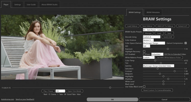 You also have access to our new Desktop Player and Color Grader application, letting you do everything you need with your .BRAW files without launching a video editing application such as DaVinci Resolve and Premiere Pro.