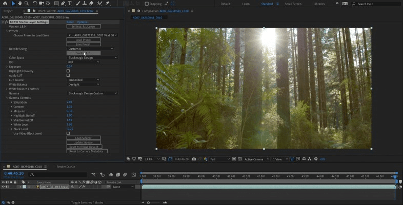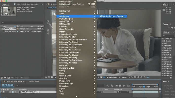 Braw Studio plugin for color and light adjustments of BRAW files in After Effects and Premier Pro