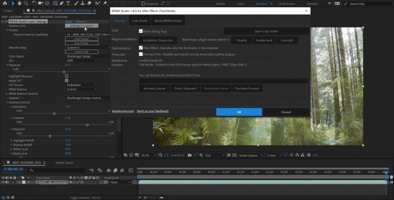 This section includes the Braw Studio version 2.5.0 plugin for After Effects and Premiere Pro that is available for download on the site. With the help of this plugin, you can import BRAW files captured with Black Magic cameras into the After Effects and Premiere Pro software and adjust their color and light.