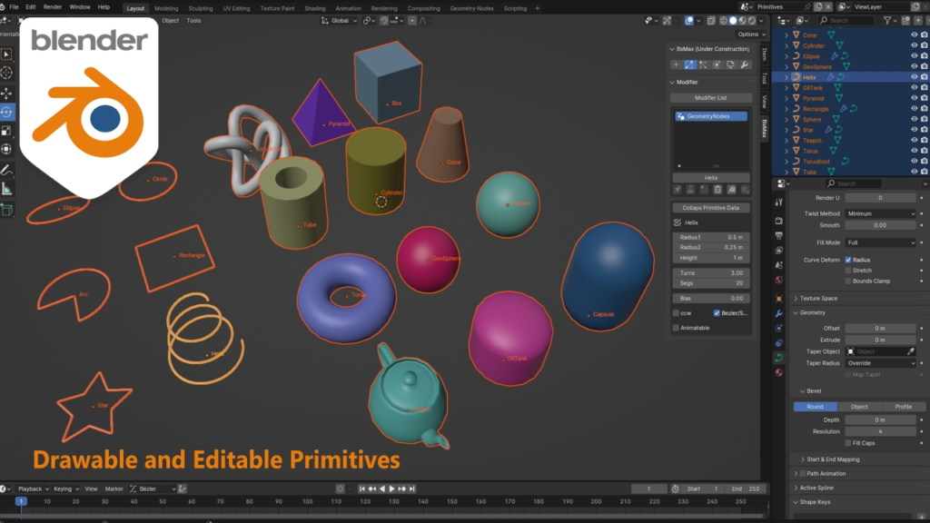 3ds Max-Style Modifier Stack: Implements a non-destructive modifier list that functions exactly like Max, allowing for easy reordering, toggling, and parameter adjustment of effects like Bend, Twist, FFD, and Noise