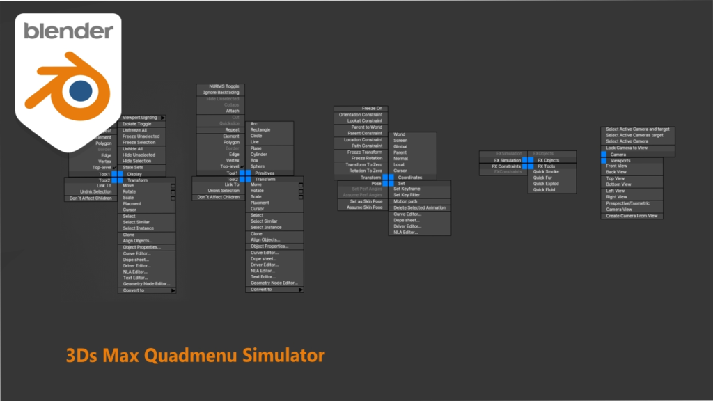 Familiar Transform Gizmos: Replaces Blender’s default manipulators with Max-style move, rotate, and scale handles, including specific axis constraints and center-pivot behaviors that Max users expect