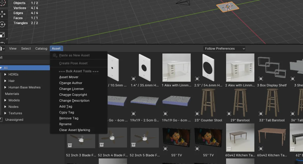 Bulk asset tools for Blender
