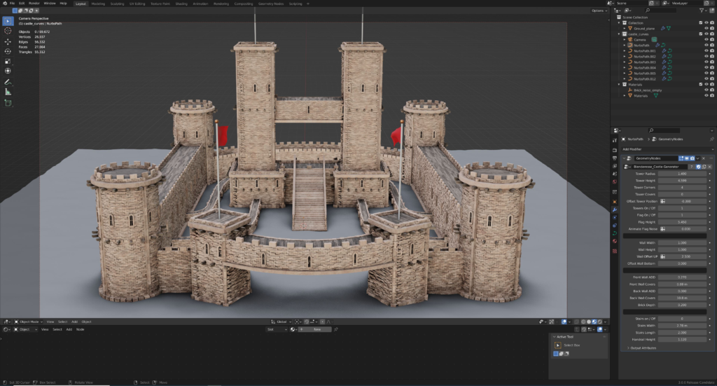 Castle Generator v0.1 Geometry Nodes for Blender – The Ultimate Procedural Medieval Fortress Builder