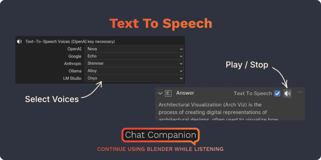 Voice Command Integration (Beta): Speak your commands to generate scripts or ask questions hands-free, perfect for when your hands are busy sculpting or painting.
