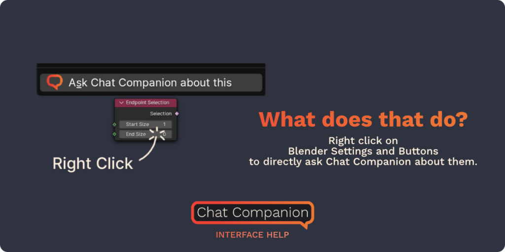 Right click on Blender settings and buttons to directly ask Chat Companion about them.