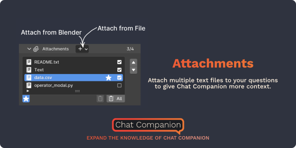 Attach multiple text files to your question to give Chat Companion more context.