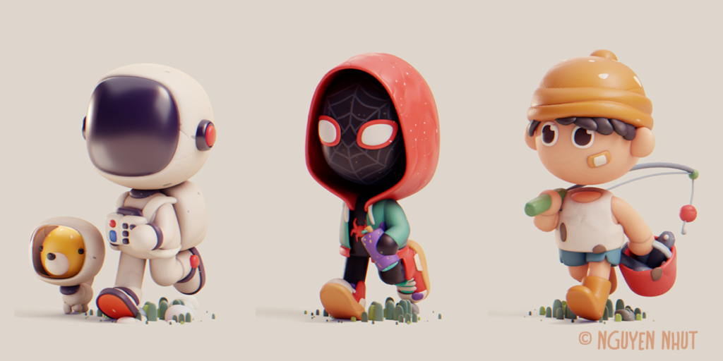 Illustrators rendering 3D characters that match 2D storybook aesthetics