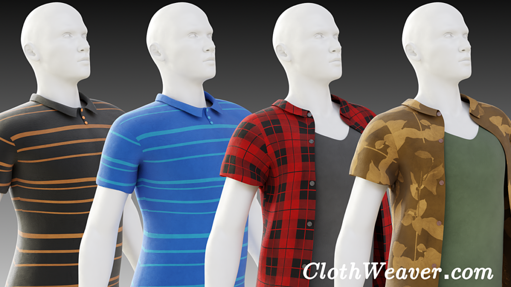 From polyester golf shirts to leather jackets and more, Cloth Weaver’s built-in procedural material can create a myriad of photo-realistic fabrics. Use our provided patterns and textures or supply your own to bring your clothing to life!