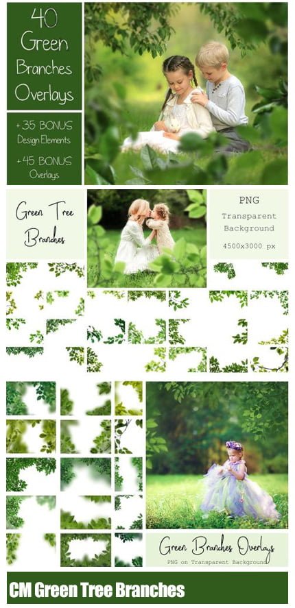 - 40 Green Branches Overlays