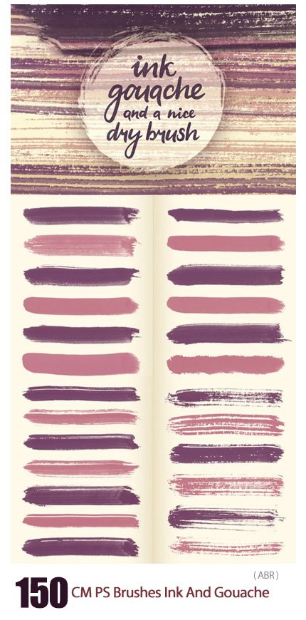 150 ink and gouache photoshop brushes 60.6 MB | With preview | ABR & JPG format