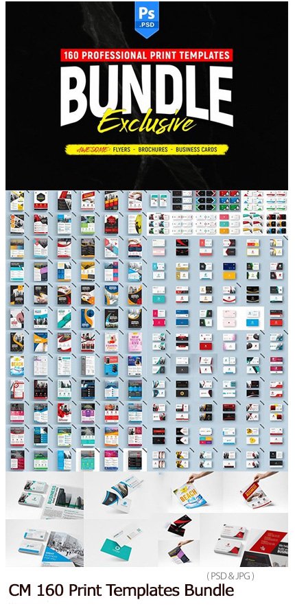 160 open layer templates for brochures, business cards, resumes.. | 584 MB | With preview | PSD & JPG format