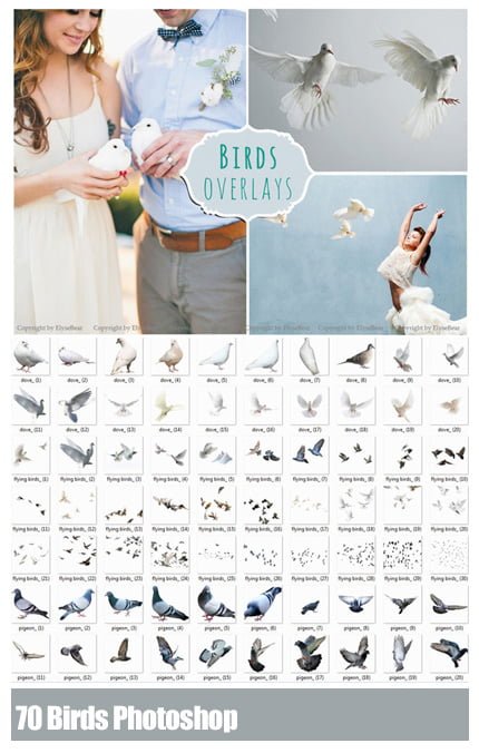 CM 70 Birds Photoshop Overlays 70 image clip art design elements, pigeon | 94.0 MB | PNG format