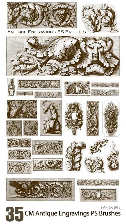 35 Photoshop Brushes Antique Engraving Patterns | 6.24 MB | With preview | ABR & JPG format