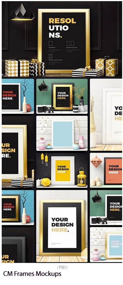 CM Frames Mockups psd 7 open layer mocaps for all types of frames and picture frames | 587 MB | PSD format