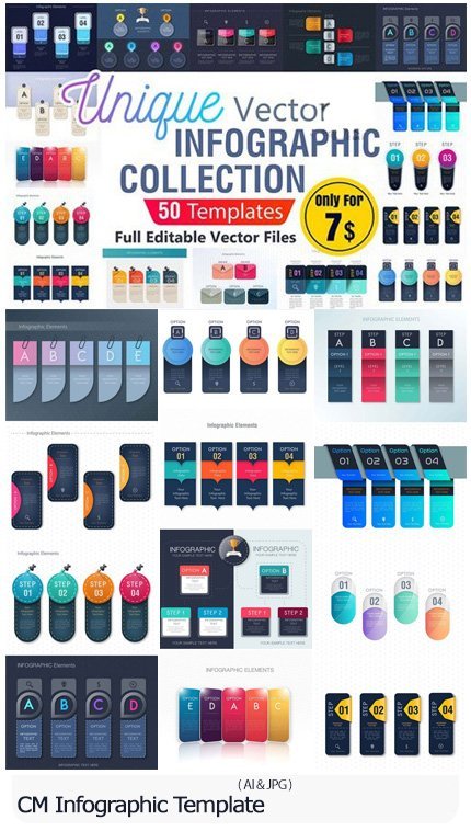 CM Infographic Template Collection 50 vector images of various infographic charts | 56.5 MB | Comes with preview | AI & JPG format