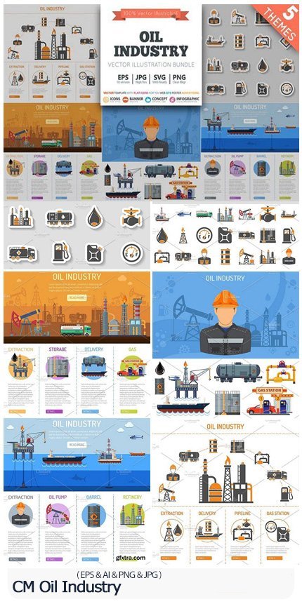CM Oil Industry Vector images of icons, banners and design elements of the oil industry infographic chart | 17.1 MB | Comes with preview | EPS & SVG & PNG & JPG format