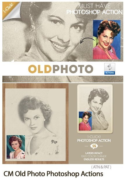 CM Old Photo Photoshop Actions obsolete images 100 MB | ATN & PAT format