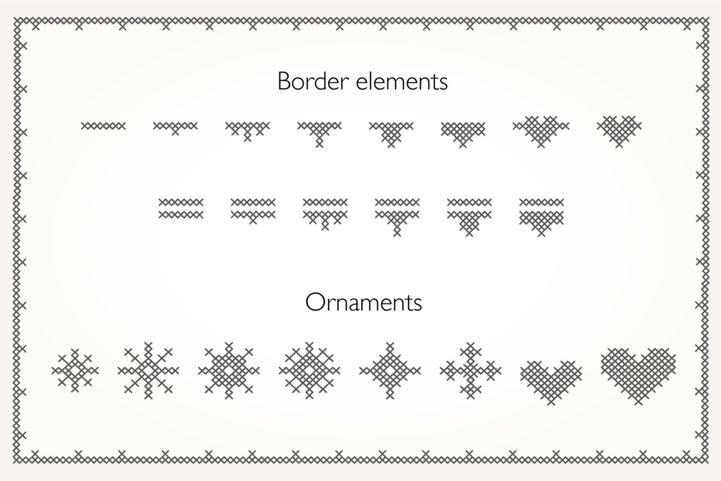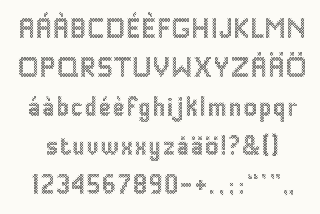 Stitching Love is the perfect cross-stitch font for your crafty design projects. It is made of sans serif letters and comes with a number of decorative ornaments and border element that you can combine in many different ways. Suitable for christmas, crafting, scrapbooking, embroidery, invitations etc.