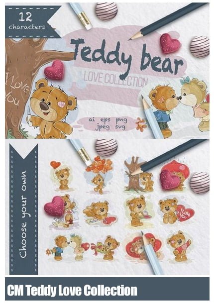 CM Teddy Love Collection Vector images and clip art of Teddy bear for Valentine | 15.4 MB | With preview | EPS & AI & PNG & JPG format