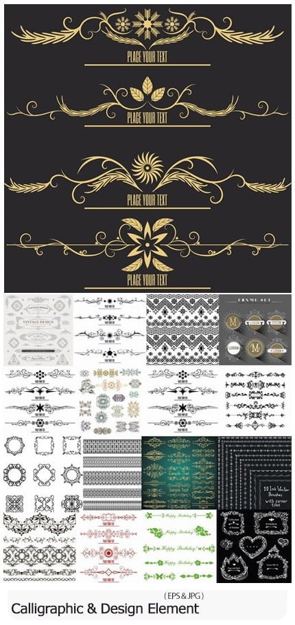 Collection Of Calligraphic And Vintage Design Element 02 25 Vector Frames and Decorative Borders for Calligraphy Pages 30.7 MB | With preview | EPS & JPG format