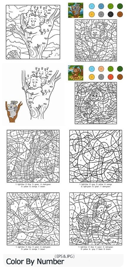 Color By Number 10 vector coloring patterns with number | 31.5 MB | With preview | EPS & JPG format