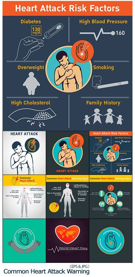 Common Heart Attack Warning 20 Images of Vector Dangerous Heart Attacks, Medicine, Cardiovascular | 34.5 MB | Comes with preview | EPS & JPG format