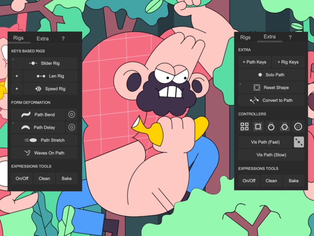 We prepared a set of tools to process Path. They help to make squash and stretch, wavy animation, secondary actions, and more. Rig tools help to connect prepared illustrations, which cannot be achieved with other classic tools.