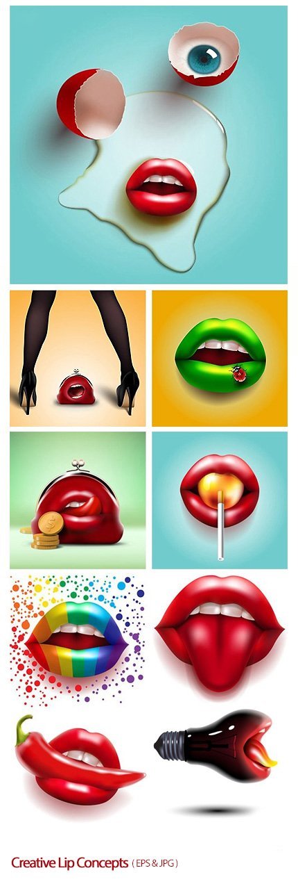 Creative Lip Concepts 17 conceptual vector images of creative lips | 56.4 MB | Comes with preview | EPS & JPG format