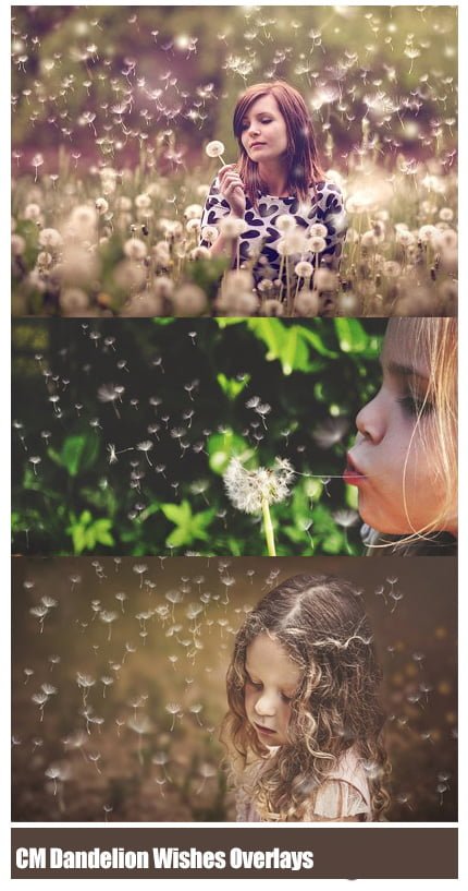 These are beautiful overlays. Photographs of real dandelion wishes, enhanced and edited, all ready for you to use. Perfect for your own art work and photography!