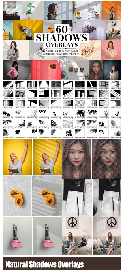 This section includes 60 window, flower and plant shadow effects for images, which are available for download in PNG, PSD and JPG formats.