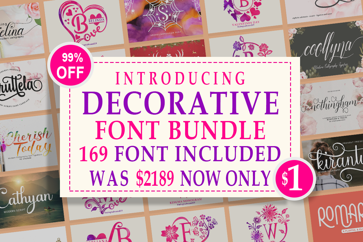 Celebrate love in all its forms with Decorative Font And Monogram Bundle, an extensive collection of 169 decorative English fonts specially curated for romantic and Valentine’s Day projects. This comprehensive bundle offers a wide range of beautiful, creative typefaces designed to add charm, elegance, and heartfelt emotion to every design.