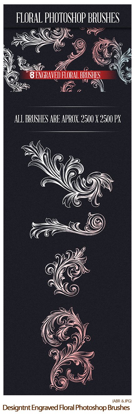 Designtnt Engraved Floral Photoshop Brushes