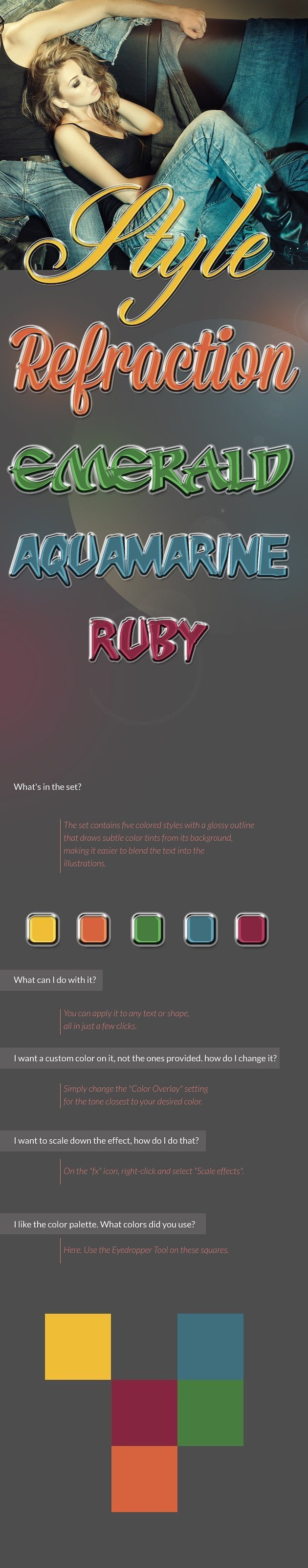 With this set, you can easily give your text an awesome style in just a couple of seconds. And having a wide variety of styles will help you pick the best look for a certain design.
