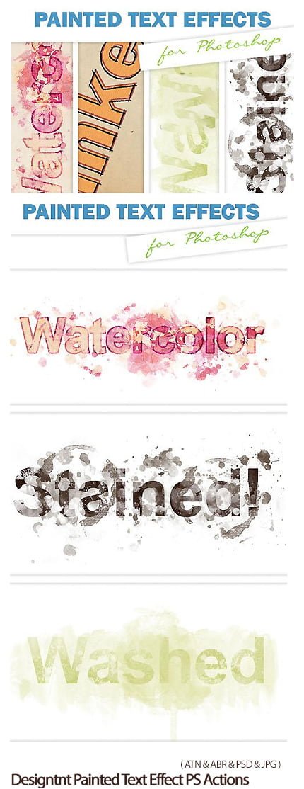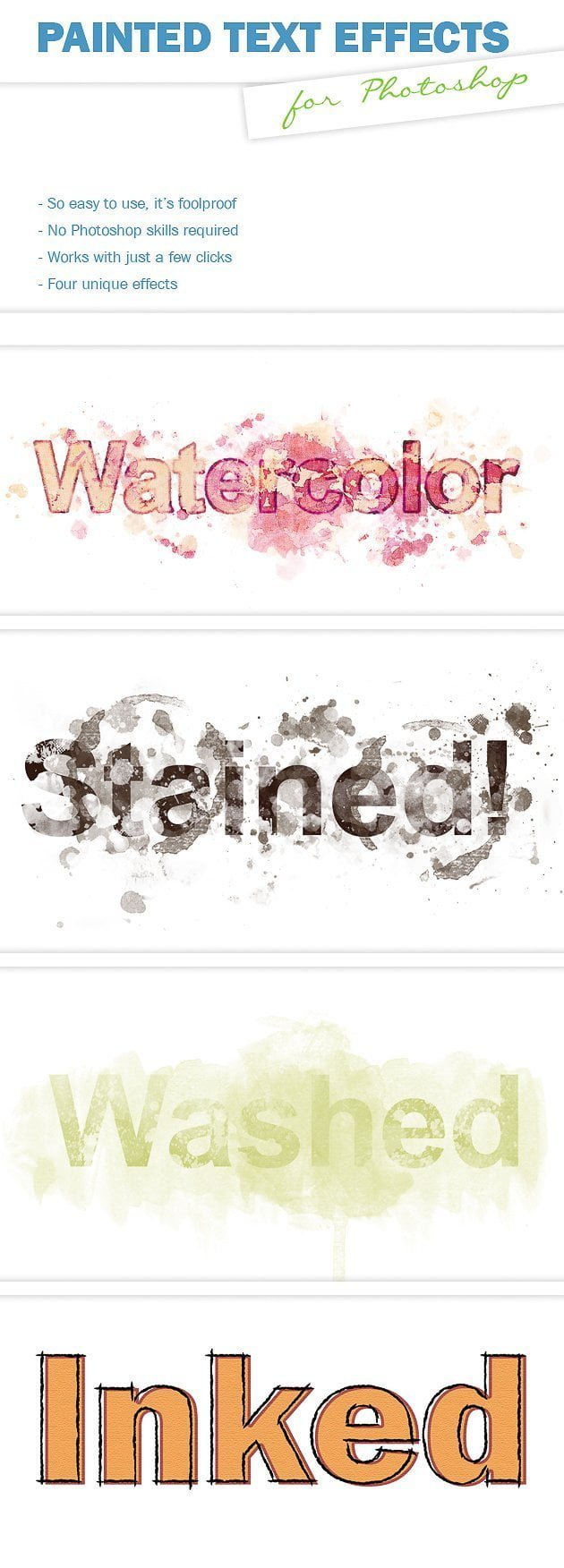 It?s a set of four Photoshop effects made from .psd templates and actions, designed to create painted effects for your text.