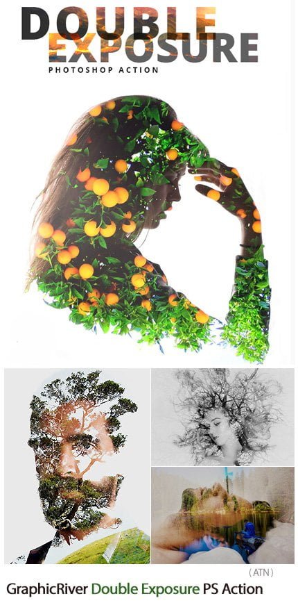 In this collection, you can see another example of image effects in action format and with the title of Photoshop action, creating a double exposure effect or combining images together, which is available for download in ATN format.