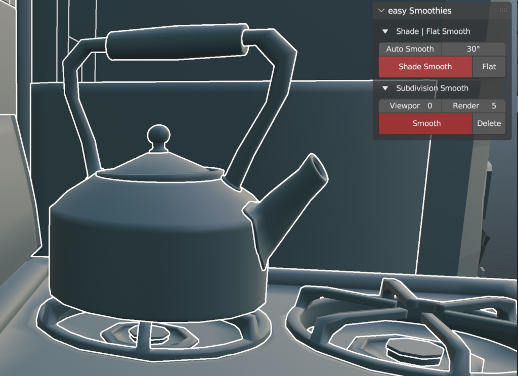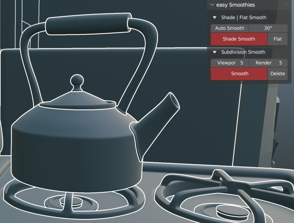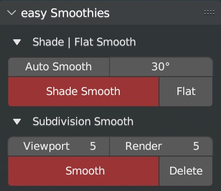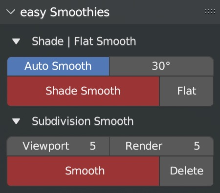 - Access via the Object Context Menu (Right-Click) > Easy Smooth or the dedicated panel in the 3D Viewport Sidebar (N-panel) under the Tool tab.