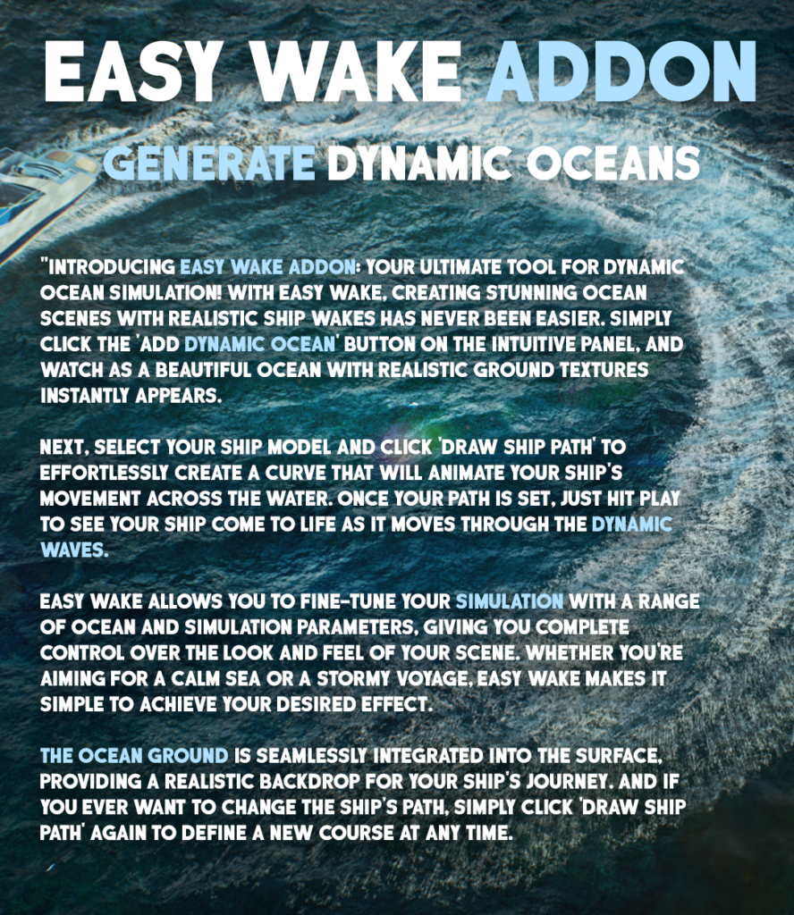 Easy Wake v1.0.0 for Blender – The Ultimate Instant Boat Wake & Water Trail Generator