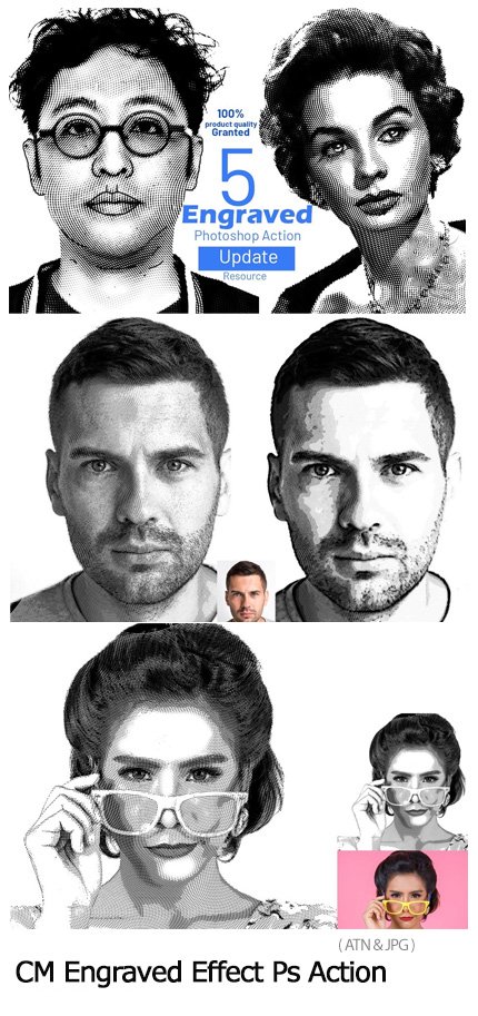 In this collection, you can see another example of image effects in action format and with the title of creating engraving effects on images from Creative Market, which is available for download in ATN and JPG formats on the site.